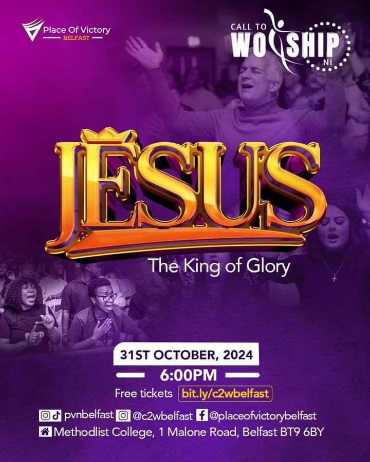 If you are in Belfast this season. Don’t miss call to worship 2024, JESUS: THE KING OF GLORY is happening on the 31st of October!!!!